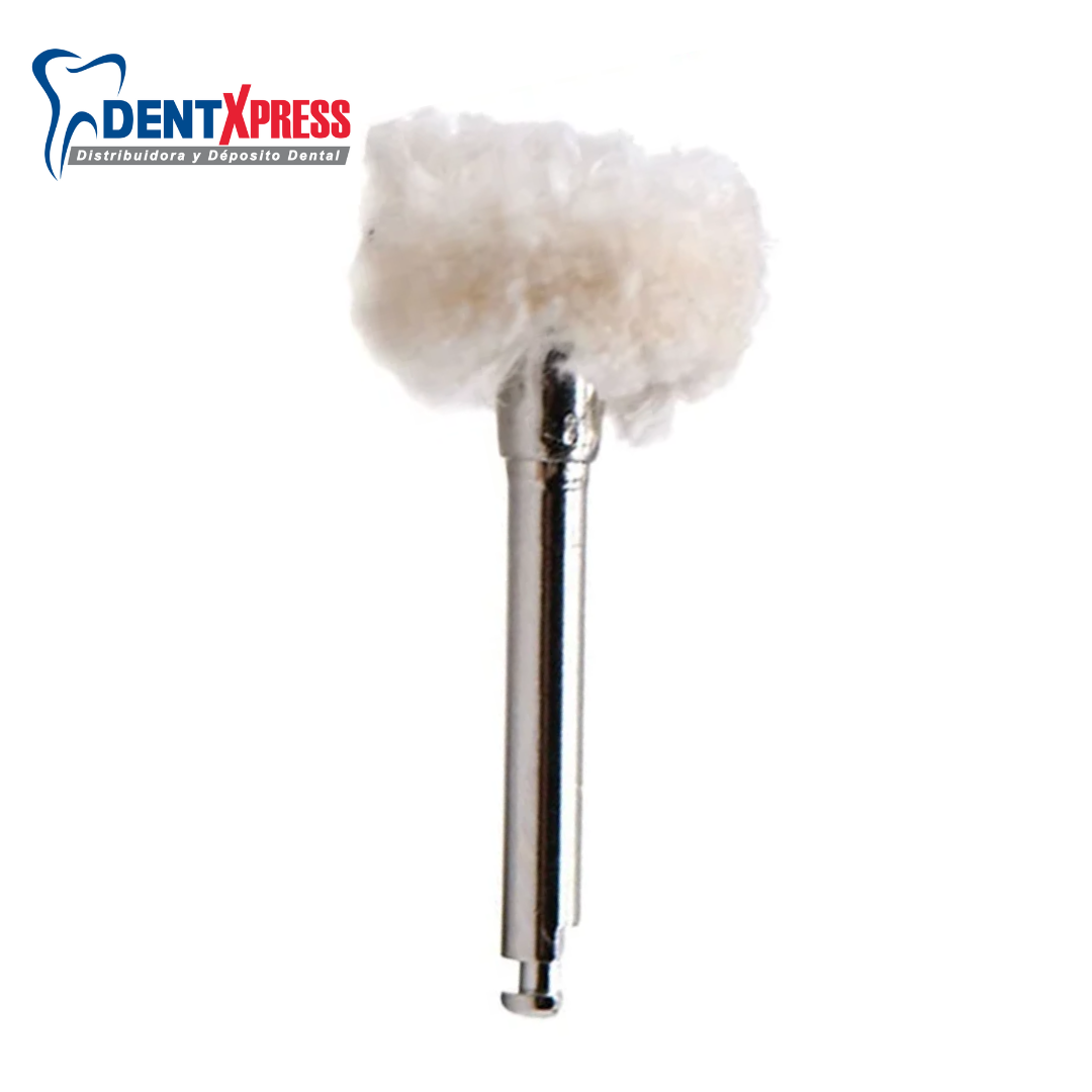 Los discos de Algodón con Mandril para Contraángulo es la herramienta definitiva para el pulido final de restauraciones estéticas y prótesis dentales. Su diseño compacto y fibras de algodón de alta calidad permiten alcanzar un brillo excepcional (glaseado mecánico) en superficies de resina compuesta, cerámica, acrílico y metales preciosos, garantizando una textura ultra-lisa que previene la acumulación de placa bacteriana.