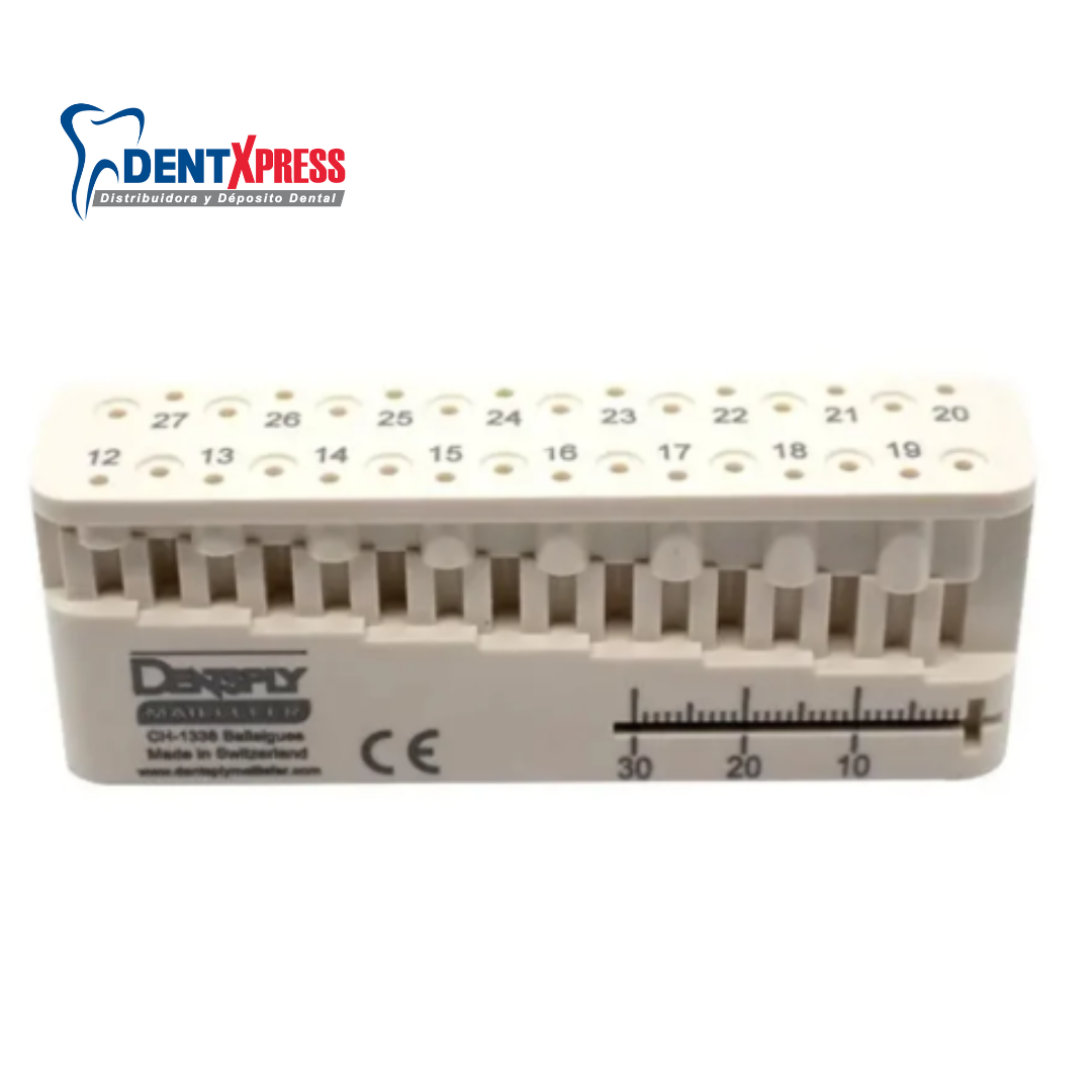 El Mini Endo de Dentsply Maillefer es un accesorio indispensable en la práctica endodóntica moderna, diseñado específicamente para la organización, limpieza y medición de instrumentos durante el tratamiento de conductos. Este dispositivo compacto permite al clínico mantener un control riguroso sobre su arsenal de limas, asegurando un flujo de trabajo eficiente y ordenado al lado del sillón dental.