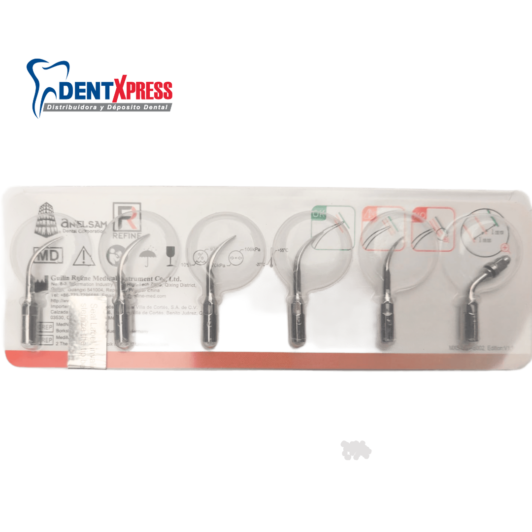Las Puntas para Escariador Ultrasónico Anelsam son insertos de alta gama diseñados para ofrecer un rendimiento superior en procedimientos de profilaxis, periodoncia y endodoncia. Fabricadas con los más altos estándares de ingeniería clínica, estas puntas garantizan una transmisión de vibración ultrasónica precisa, permitiendo una eliminación eficaz del cálculo dental y la placa bacteriana mientras se preserva la integridad del esmalte y los tejidos blandos.